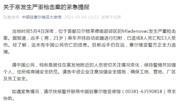 - 塞爾維亞再次發(fā)生槍擊事件 已致8人死亡