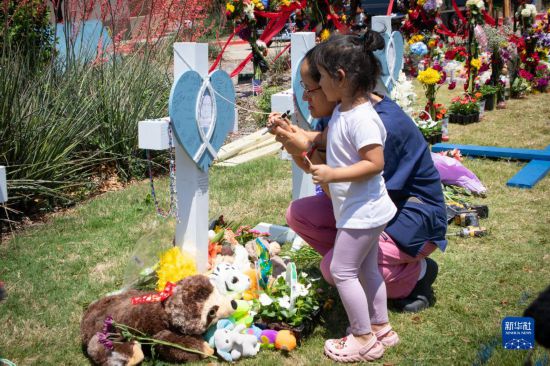 5月8日,在美國(guó)得克薩斯州達(dá)拉斯以北城鎮(zhèn)艾倫的購(gòu)物中心槍擊事件現(xiàn)場(chǎng)附近,一名小朋友準(zhǔn)備在受害者紀(jì)念板上寫下哀思。達(dá)拉斯以北城鎮(zhèn)艾倫的一家購(gòu)物中心6日發(fā)生槍擊事件,造成包括槍手在內(nèi)的9人死亡、7人受傷。新華社發(fā)(田丹攝)