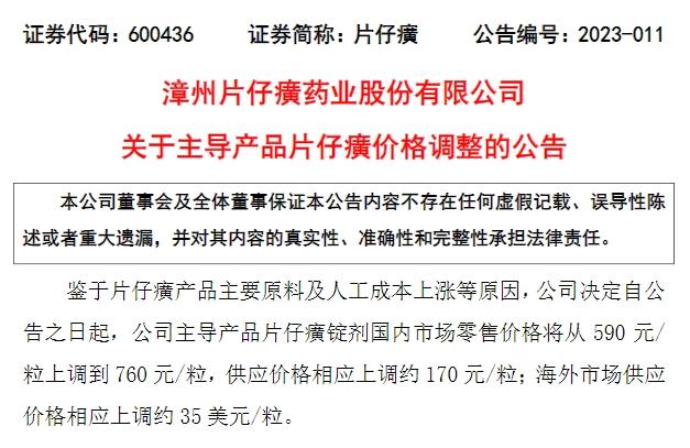 不過相較此前的“小步伐”調整,本次一次性上調170元,提價幅度高達29%,也創(chuàng)下片仔癀史上最大調價幅度。
