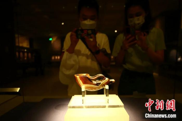 藏于陜西歷史博物館的鑲金獸首瑪瑙杯。張遠 攝