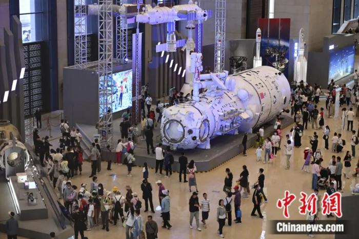 觀眾在中國國家博物館參觀“中國載人航天工程30年成就展”。田雨昊 攝