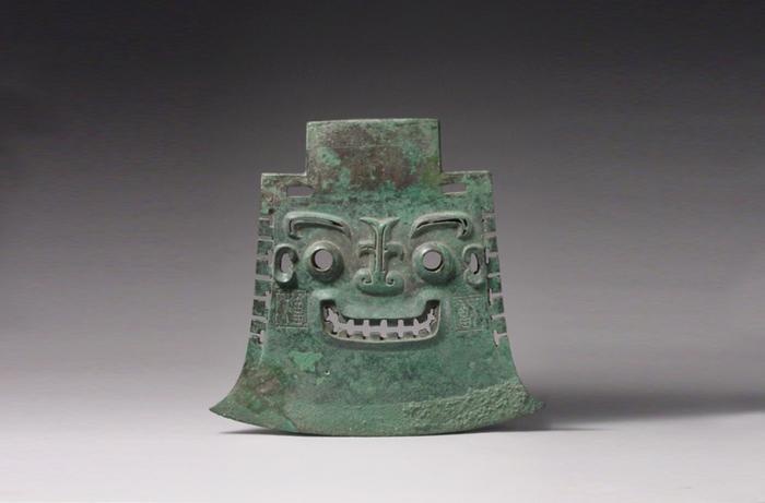 亞醜鉞器身透雕人面紋,人面五官微突出,雙目圓睜,嘴角上揚(yáng),口中露出城墻垛口似的牙齒,因其口部?jī)蓚?cè)對(duì)稱(chēng)地銘有“亞醜”二字,故得名“亞醜鉞”。乍一看,好像正在微笑。