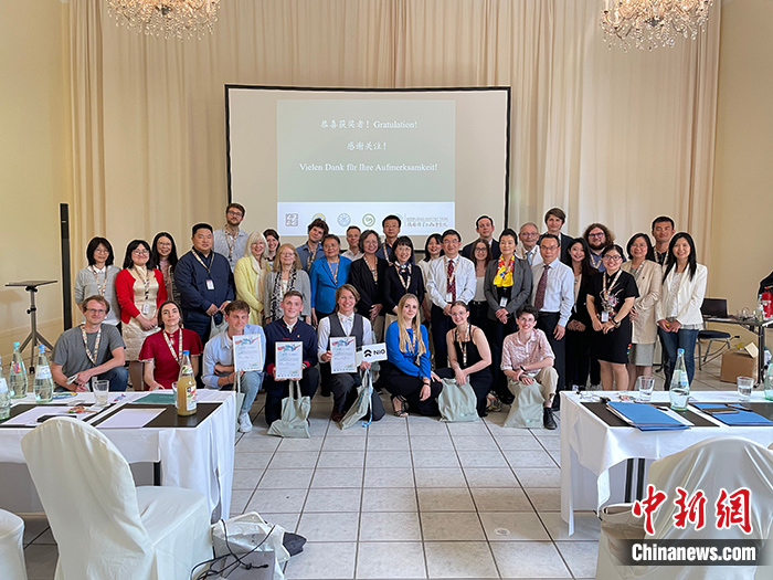 圖為評(píng)委與參賽選手等合影。 中新社發(fā) 中國(guó)駐德國(guó)大使館教育處供圖