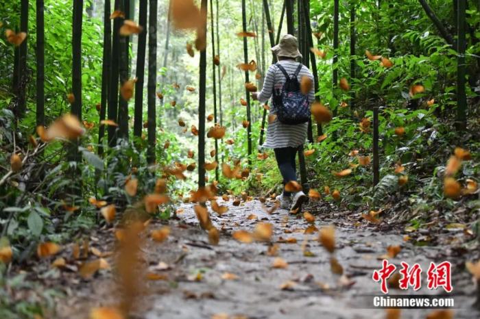 圖為蝴蝶谷林間道路上的箭環(huán)蝶。中新社記者 劉冉陽 攝