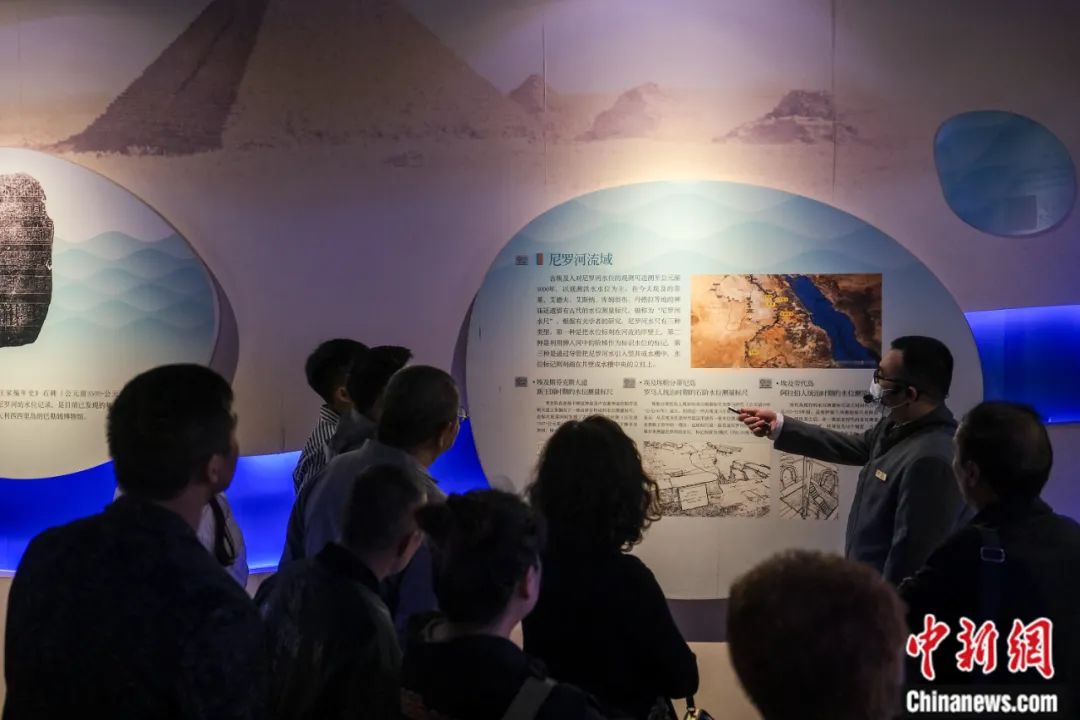 白鶴梁水下博物館講解員向游客介紹尼羅河流域水位測量標尺——“尼羅尺”。何蓬磊 攝