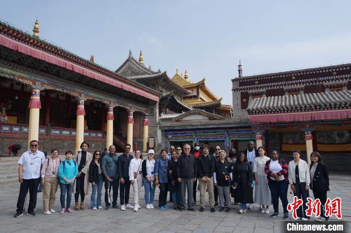 圖為外國記者團(tuán)在塔爾寺合影?!●R銘言 攝