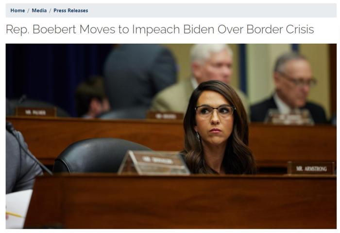 對于奧格爾斯的彈劾條款,勞倫·博伯特6月13日表示,“根據我們的憲法,我支持任何提出的彈劾條款,對拜登進行彈劾?!?博伯特還敦促共和黨人利用眾院多數席位的優(yōu)勢,立即對拜登政府采取行動。