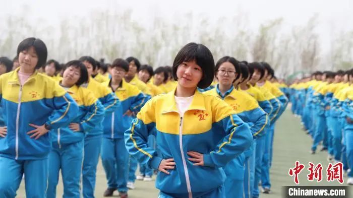 資料圖:學(xué)生們?cè)诖笳n間做韻律操。黃建 攝