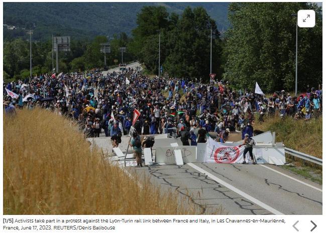 據(jù)報(bào)道,當(dāng)天,大約2000名抗議者聚集在阿爾卑斯山地區(qū)的莫里耶訥河谷,反對(duì)當(dāng)局在當(dāng)?shù)匦藿ǜ哞F。據(jù)介紹,這條高鐵計(jì)劃連接法國(guó)里昂和意大利,線路途經(jīng)阿爾卑斯山地區(qū)。