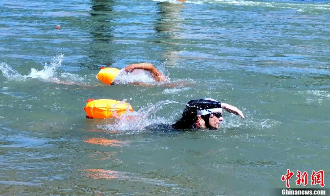 2022年7月,來自德國、美國、英國、比利時、俄羅斯等20個國家和地區(qū)的211名運動員和競技愛好者,在青海省黃河上游水域參加搶渡黃河極限挑戰(zhàn)賽。李雋 攝