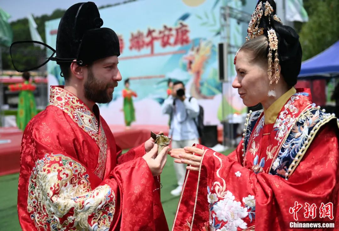 2013年6月16日,一對外國夫婦品嘗粽子。當天,一場外國友人體驗端午節(jié)習俗的活動在吉林長春舉行,近百名外國友人通過穿漢服、品嘗粽子、戴香包、投壺等“沉浸式”體驗活動,感受中國傳統(tǒng)節(jié)日的魅力。張瑤 攝
