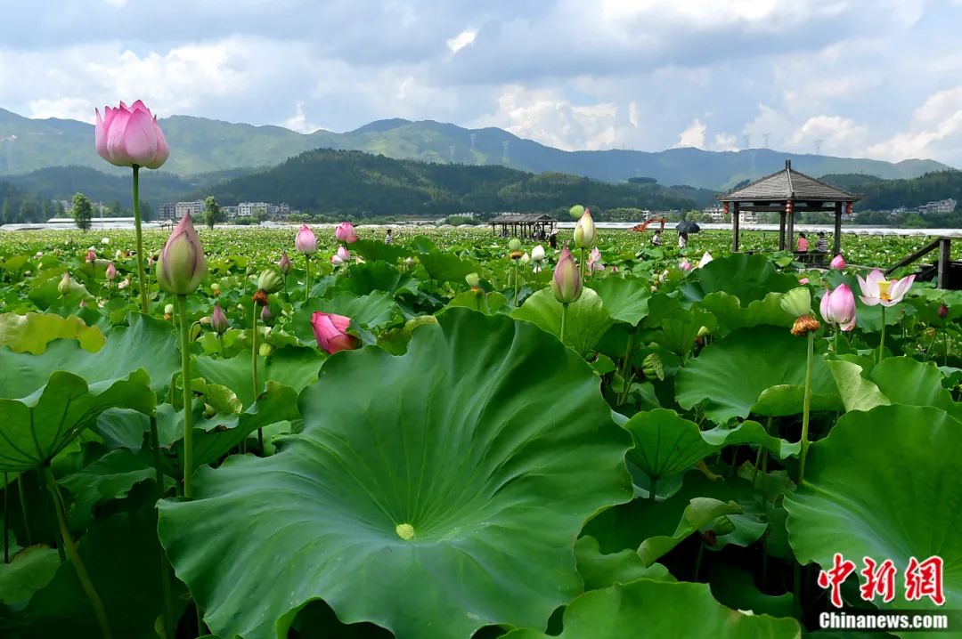 福建省周寧縣浦源村鯉魚(yú)溪公園內(nèi)荷花盛開(kāi)。張斌 攝