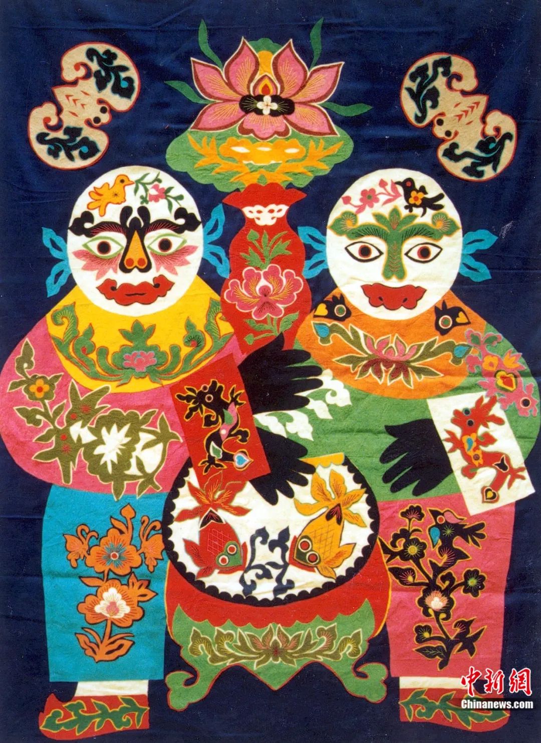 布貼畫(huà)作品“和合二仙”。鐘欣 攝