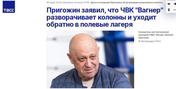 中新網6月25日電 綜合塔斯社、法新社、CNN等外媒報道,當地時間24日,“瓦格納”集團負責人普里戈任在社交媒體上發(fā)聲,稱“瓦格納”將調轉方向返回營地。