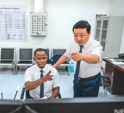 毛鑫是非洲之星鐵路運(yùn)營(yíng)公司運(yùn)輸部?jī)?nèi)羅畢車站運(yùn)轉(zhuǎn)主任,他與徒弟彼得·恩堅(jiān)加一起制定調(diào)度計(jì)劃、調(diào)控列車運(yùn)轉(zhuǎn)。“我們無(wú)保留地把國(guó)內(nèi)的技術(shù)標(biāo)準(zhǔn)帶到肯尼亞,學(xué)員已達(dá)到國(guó)內(nèi)車站同等作業(yè)標(biāo)準(zhǔn)?!泵握f(shuō),幫助肯尼亞建設(shè)第一條現(xiàn)代化鐵路,是他人生中的亮點(diǎn)。彼得表示,自己從師父身上學(xué)到了許多專業(yè)技術(shù),未來(lái)他將把知識(shí)傳授給更多人。