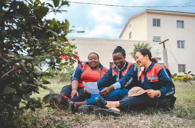 中國(guó)師父陳玲(右)是非洲之星鐵路運(yùn)營(yíng)公司工電部電子設(shè)備檢修工區(qū)工長(zhǎng)。在肯尼亞工作4年來(lái),她見(jiàn)證了女學(xué)員們電務(wù)技術(shù)的成長(zhǎng)。“現(xiàn)在她們都能獨(dú)當(dāng)一面?!标惲嵴f(shuō)。朱迪思(左)是陳玲的學(xué)員之一,她從師父那里獲得的不僅是技術(shù),工作間隙對(duì)飲食、文化等多維度的交流同樣讓她受益匪淺?!拔覀冎g是師徒,更是姐妹。”朱迪思說(shuō)。圖為陳玲在休息時(shí)教學(xué)員唱中文歌曲。