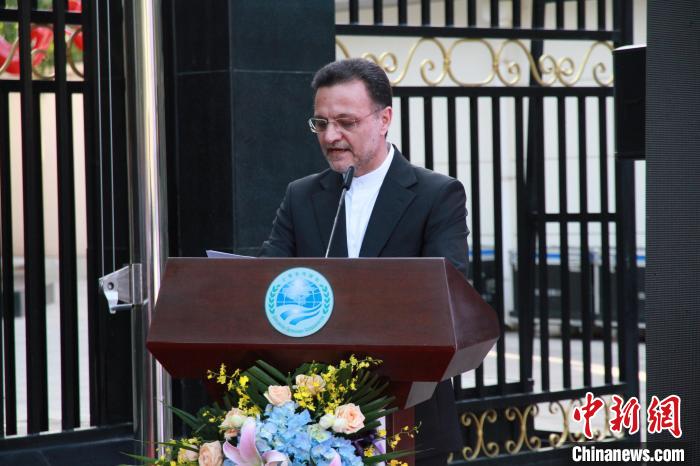 7月4日,上合組織秘書處在京舉行接收伊朗成為成員國的升旗儀式,伊朗駐華大使巴赫蒂亞爾出席并發(fā)表講話。  肖玉笛 攝