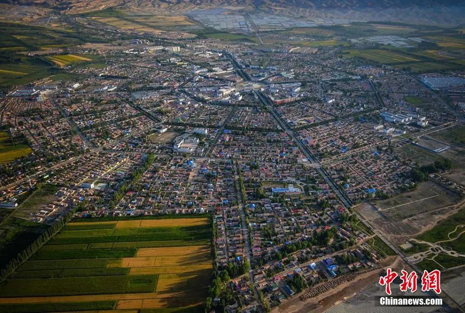 從空中俯拍世界最大規(guī)模的八卦城。據(jù)介紹,特克斯縣根據(jù)《周易》八卦“后天圖”方位設(shè)計建成,路路相通,街街相連,有著神奇迷宮般的街道布局,是現(xiàn)今世界上唯一一座保存良好、卦爻完整、規(guī)模最大的八卦城。劉新 攝