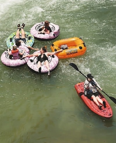 美國南部多地近日接連刷新高溫紀錄。圖為近日,在美國得克薩斯州新布朗費爾斯,人們在河中消暑。