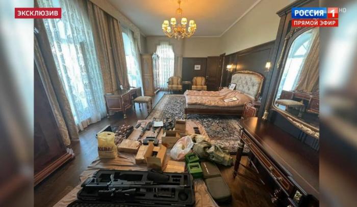 據(jù)報道,“俄羅斯1”電視頻道在“60分鐘節(jié)目中”展示了普里戈任辦公室和家中的畫面,執(zhí)法人員在那里發(fā)現(xiàn)了現(xiàn)金、假發(fā)、護(hù)照、武器等,房屋的院子里還停放著一架小型直升機。