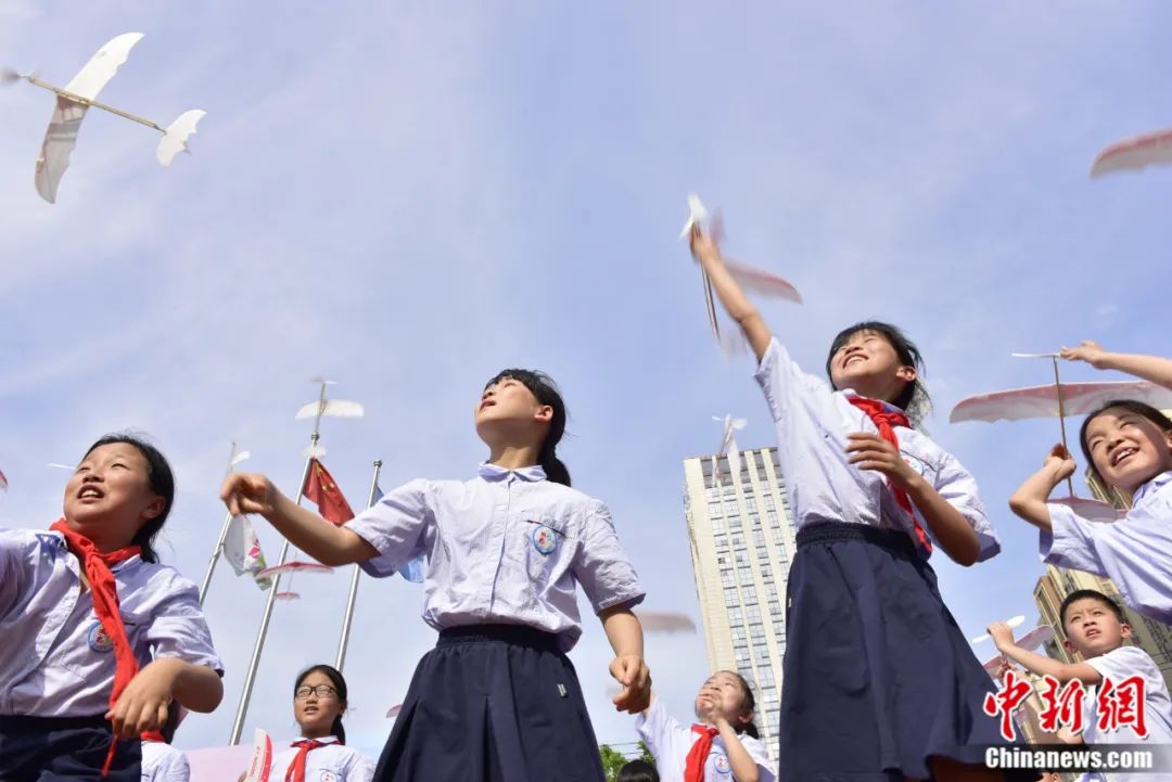 安徽合肥小學(xué)生放飛飛機(jī)模型。葛宜年 攝