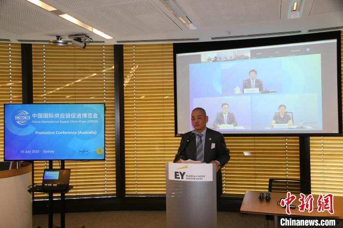 中新社悉尼7月10日電 (記者 顧時(shí)宏)首屆中國國際供應(yīng)鏈促進(jìn)博覽會(鏈博會)澳大利亞站路演活動10日下午在悉尼以線上線下相結(jié)合的方式舉行。