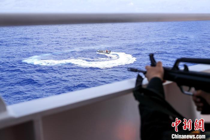兩發(fā)紅色信號(hào)彈升空,一聲長(zhǎng)汽笛響徹海域。指揮所通過16國(guó)際頻道用英語(yǔ)向高速接近的“海盜艇”發(fā)出警告:“你迅速離開,否則后果自負(fù)?!彪S船取證人員全程照相、錄像取證。