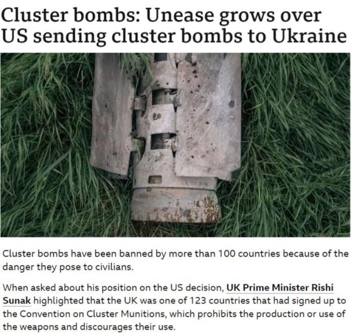 △英國廣播公司:集束彈藥因其對平民構(gòu)成的長期風(fēng)險,已被全世界上百個國家禁用。就連一向積極軍援烏克蘭的英國,也“不鼓勵”美國提供這種大殺傷力武器。