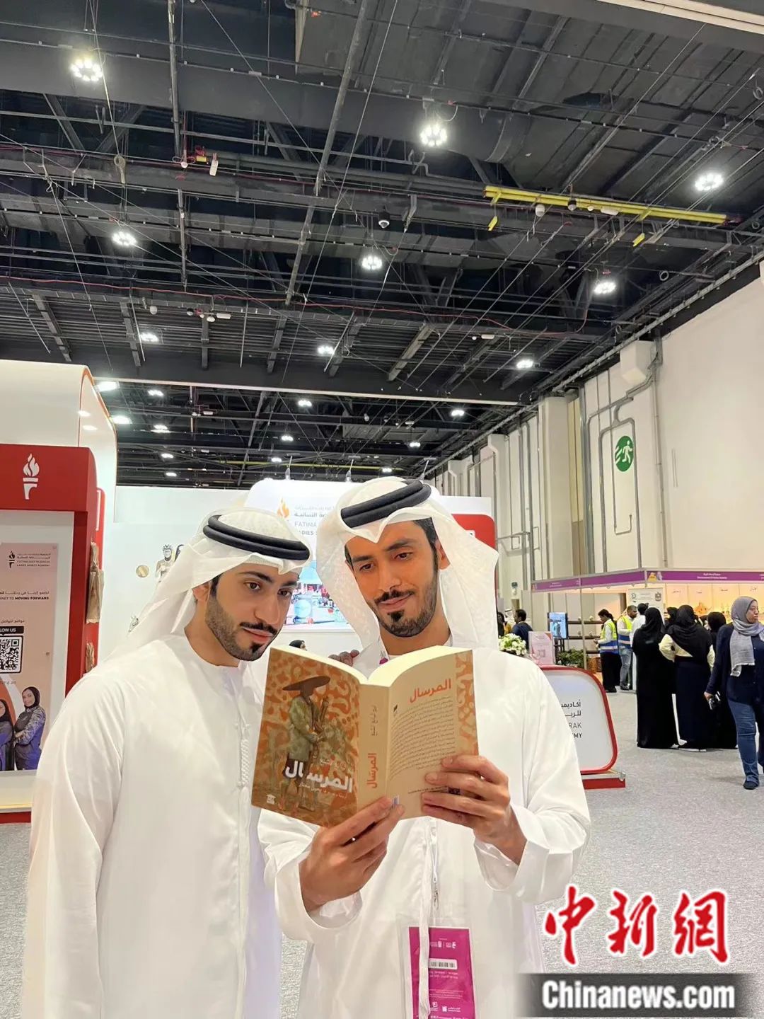 在阿布扎比國(guó)際書(shū)展上,阿拉伯文學(xué)愛(ài)好者閱讀中國(guó)文學(xué)作品《捎話(huà)》。譯林出版社 供圖
