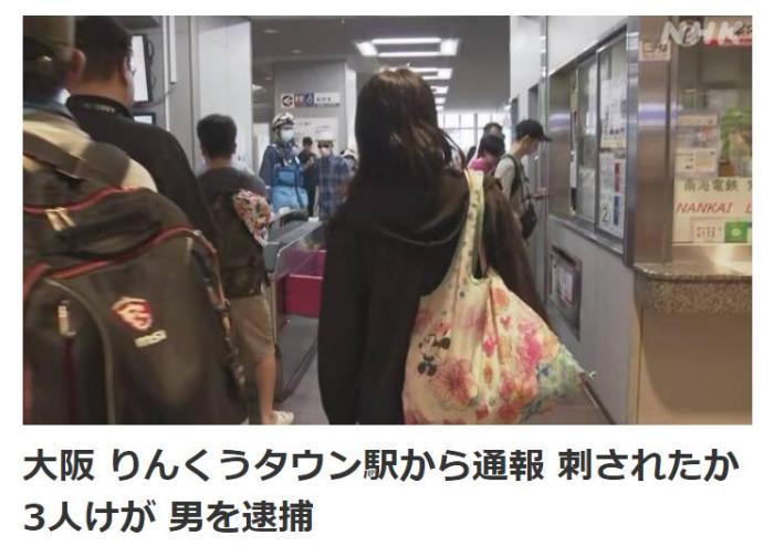 當(dāng)?shù)貢r(shí)間23日上午10時(shí)30分許,日本大阪泉佐野市的臨空鎮(zhèn)車站發(fā)生了一起持刀傷人事件。圖片來(lái)源:日本放送協(xié)會(huì)(NHK)報(bào)道截圖