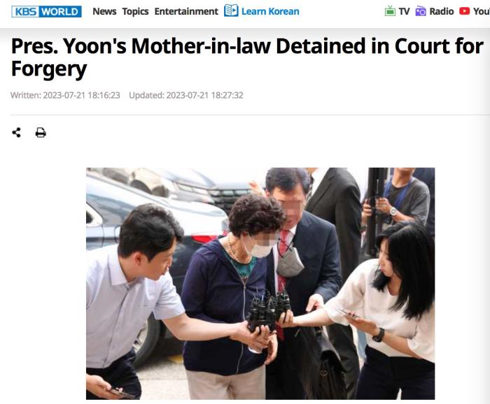 韓聯(lián)社指出,現(xiàn)任總統(tǒng)的岳母當(dāng)庭被捕,在韓國憲政史上尚屬首次。