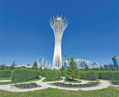 多年來,中國與哈薩克斯坦合作為哈首都阿斯塔納生態(tài)圈打造生態(tài)屏障。圖為阿斯塔納城市象征——生命之樹,在其觀景平臺上可俯瞰阿斯塔納全景。