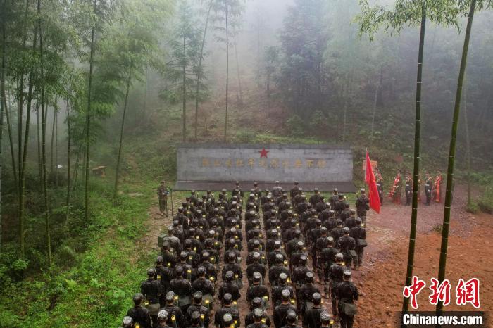 官兵徒步行軍至武夷山市洋莊鄉(xiāng)小漿村張山頭無名紅軍烈士墓群,開展“追尋紅色印記、賡續(xù)紅色血脈”參觀見學(xué)活動。中新社記者 張麗君 攝