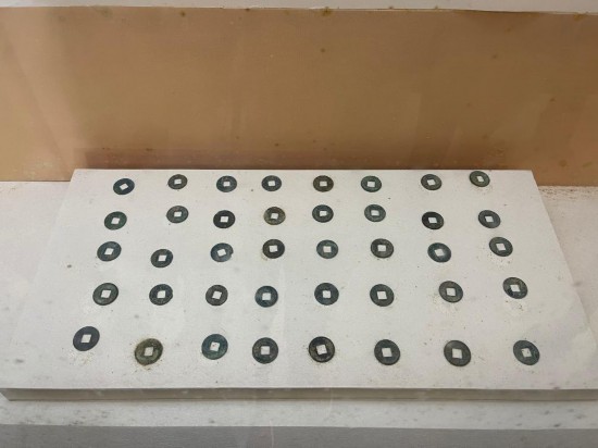 張騫出使西域?qū)κ澜缥拿鞯陌l(fā)展產(chǎn)生了深遠(yuǎn)影響,這是陳列在張騫紀(jì)念館內(nèi)的古絲綢之路上商旅使用的古錢幣。新華社記者 葉昊鳴 攝