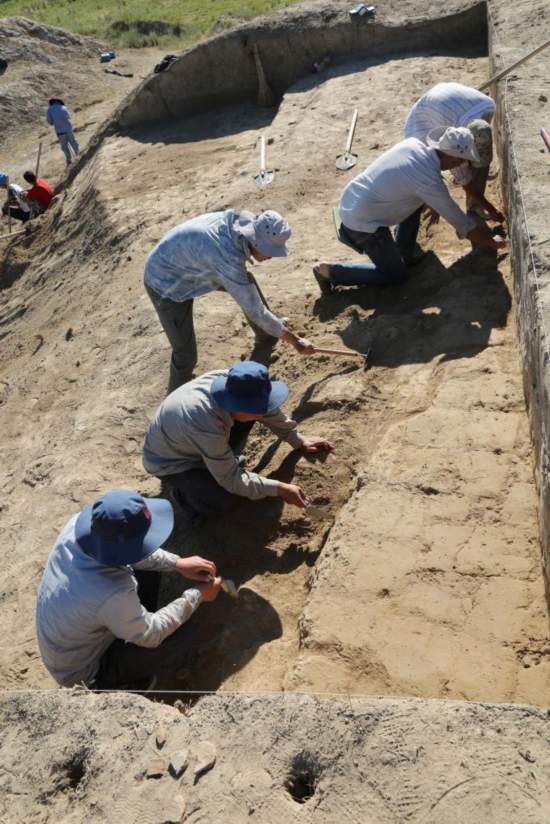 2018年7月5日,中國和吉爾吉斯斯坦考古人員聯(lián)合發(fā)掘吉爾吉斯斯坦紅河古城西側(cè)佛寺遺址。新華社發(fā)(受訪者供圖)