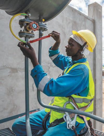 當(dāng)?shù)毓と嗽陧椖楷F(xiàn)場工作。