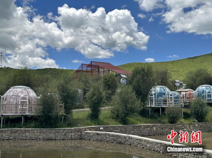 在園區(qū)內(nèi),除了大面積的草場,還能看見一些臨水而建、顏色各異的圓形房間。王春貴介紹稱,那是供游客休閑的星空房。目前,紅原牦?,F(xiàn)代農(nóng)業(yè)園區(qū)正朝著牧旅融合的道路發(fā)展,咖啡屋、星空房等休閑設(shè)施以及牧旅融合體驗區(qū)已初步建設(shè)完成?!叭拷ǔ梢院?,游客還能在園區(qū)內(nèi)體驗牦牛喂養(yǎng)。”王春貴說。