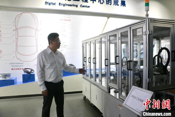 臺(tái)青孫弘明介紹柳州宏德激光科技有限公司研發(fā)的激光加工自動(dòng)線。林馨 攝