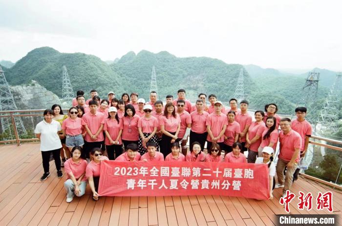 臺灣青年在貴州平塘參觀“中國天眼”并合影留念。邱軼柯 攝