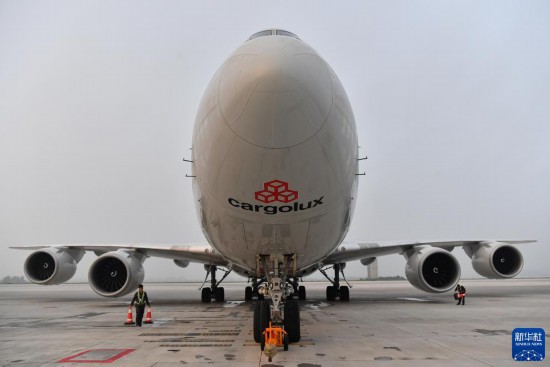 8月1日,在中國(guó)鄭州新鄭國(guó)際機(jī)場(chǎng),一架盧森堡貨航貨機(jī)裝貨完畢準(zhǔn)備起飛。新華社記者 李嘉南 攝