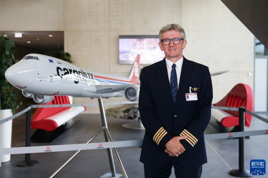 8月1日,在盧森堡貨航總部,盧森堡貨航飛行運(yùn)營(yíng)執(zhí)行副總裁克洛德·澤倫站在貨機(jī)模型前。新華社記者 鄭煥松 攝