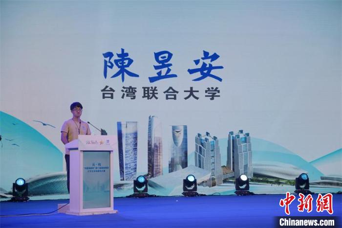 6日晚,來自臺(tái)灣聯(lián)合大學(xué)的學(xué)生陳昱安作為臺(tái)灣學(xué)生代表發(fā)言。主辦方供圖