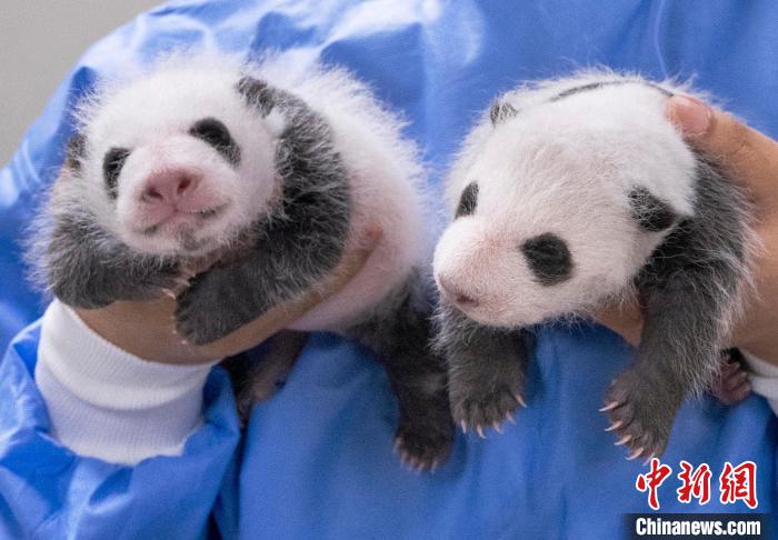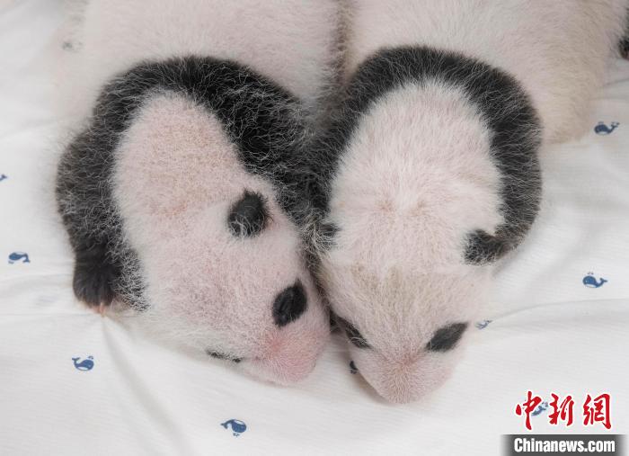 這對雌性大熊貓雙胞胎幼崽于當(dāng)?shù)貢r間7月7日凌晨在韓國出生。愛寶樂園給記者提供的資料顯示,雙胞胎出生時的體重分別是180克和140克,出生第30天的體重分別為1.1公斤和1.2公斤。