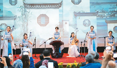 《茉莉花》的音符回響在空中,如清風(fēng)拂過(guò)耳際。緊接著,悠揚(yáng)的琵琶聲響起,《青花瓷》的旋律似潺潺流水,緩緩地講述著一段古老而深情的故事。曲目《我在景德鎮(zhèn)等你》又像一道溫暖的陽(yáng)光,以悅耳的瓷笛聲給人帶來(lái)希冀。景德鎮(zhèn)瓷樂(lè)隊(duì)演奏的埃及民歌《尼羅河畔的歌聲》渾厚深沉,更是讓現(xiàn)場(chǎng)觀眾如癡如醉。