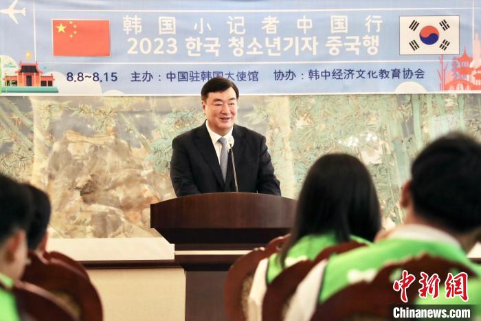 中新網(wǎng)首爾8月8日電 (記者 劉旭)8日,“2023韓國(guó)小記者中國(guó)行”活動(dòng)在首爾舉行啟程儀式。中國(guó)駐韓國(guó)大使邢海明及韓中經(jīng)濟(jì)文化教育協(xié)會(huì)理事長(zhǎng)申京淑、韓中城市友好協(xié)會(huì)會(huì)長(zhǎng)權(quán)起植和來(lái)自韓國(guó)各地的22名優(yōu)秀青少年學(xué)生出席活動(dòng)。