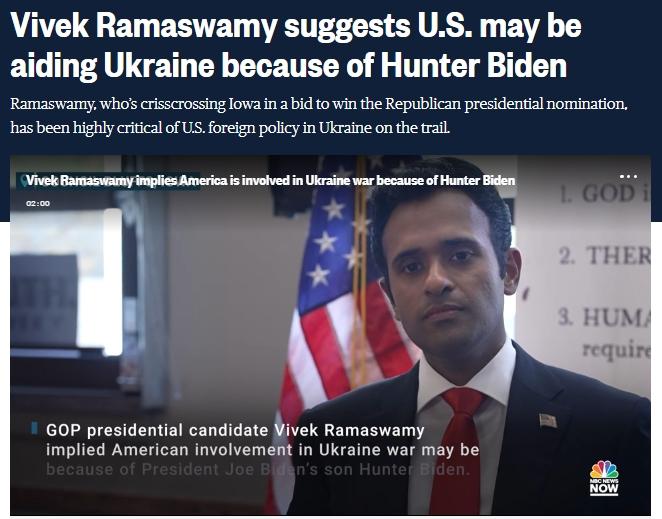 據(jù)報道,拉馬斯瓦米在艾奧瓦州競選活動中的發(fā)言稱,“美國武裝力量的目標是推進美國利益、保護祖國,而不是無目的地卷入一場危機,且該危機有可能是為償還烏克蘭能源企業(yè)布里斯馬公司給美國總統(tǒng)拜登家庭成員500萬美元私人賄賂?!?/p>