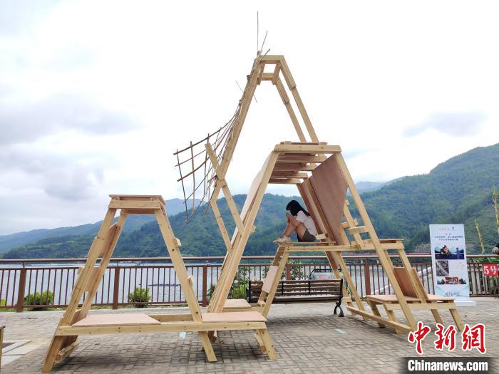 “初識(shí)雄江鎮(zhèn),映入眼簾是美麗的江邊水景與層層翠綠的山巒?!迸_(tái)灣銘傳大學(xué)學(xué)生張竹萱接受記者采訪時(shí)表示,為了讓模型與當(dāng)?shù)孛癖娪谢?dòng)性,作品《山岳之渝》以梯田地形為概念,將空間拆解成不同高低且錯(cuò)落的休憩平臺(tái),可以讓游客和民眾登高遠(yuǎn)眺,更好地看見(jiàn)雄江鎮(zhèn)山水環(huán)繞的美景。
