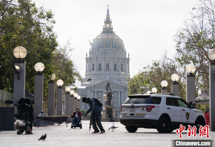 當(dāng)?shù)貢r(shí)間8月19日,無(wú)家可歸者從美國(guó)舊金山市政廳附近經(jīng)過(guò)。中新社記者 劉關(guān)關(guān) 攝