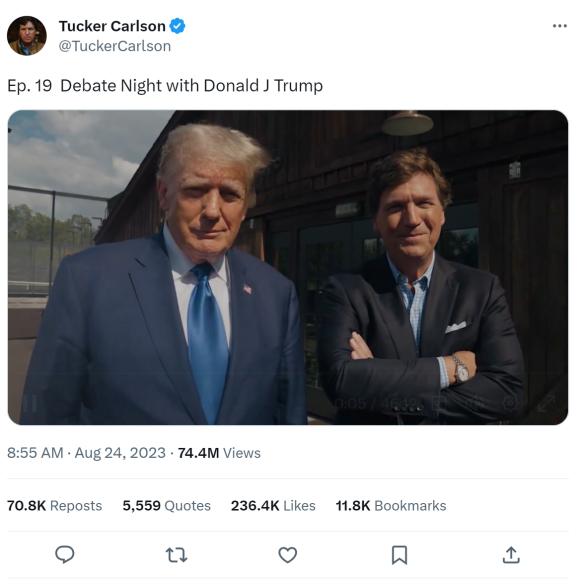 圖片來(lái)源:塔克·卡爾森社交媒體賬戶截圖