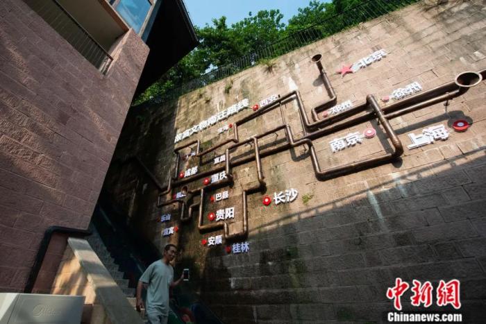 重慶故宮文物南遷紀念館內一處外墻展示的故宮文物南遷路線。何蓬磊 攝
